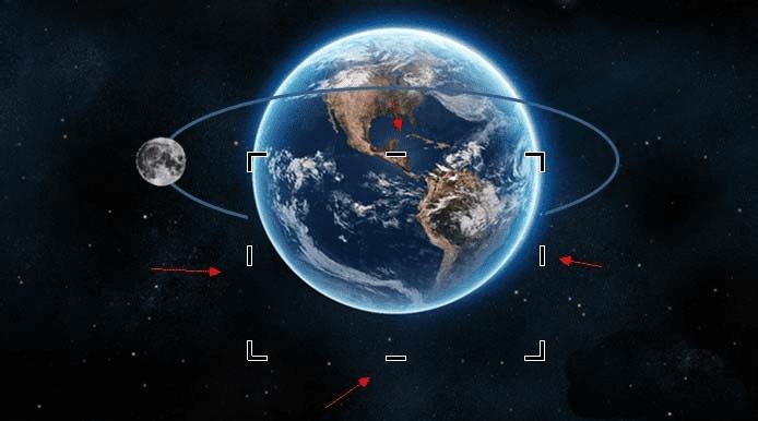 5、制作轨道地球背后的效果:选择地球和背景的元素,复制,粘贴(Ctril+C,Ctril+V),然后拖动与原背景地球完全重合,如图所示。