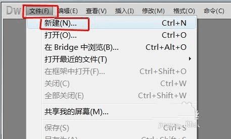 在菜单中单击“文件”选择“新建”