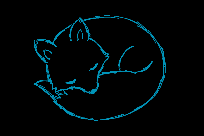 现在,你可以删除这两个椭圆,继续绘制:耳朵,后腿,闭眼睛,狐狸尾巴上的微小白色尖端。