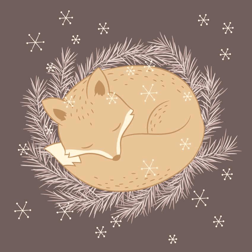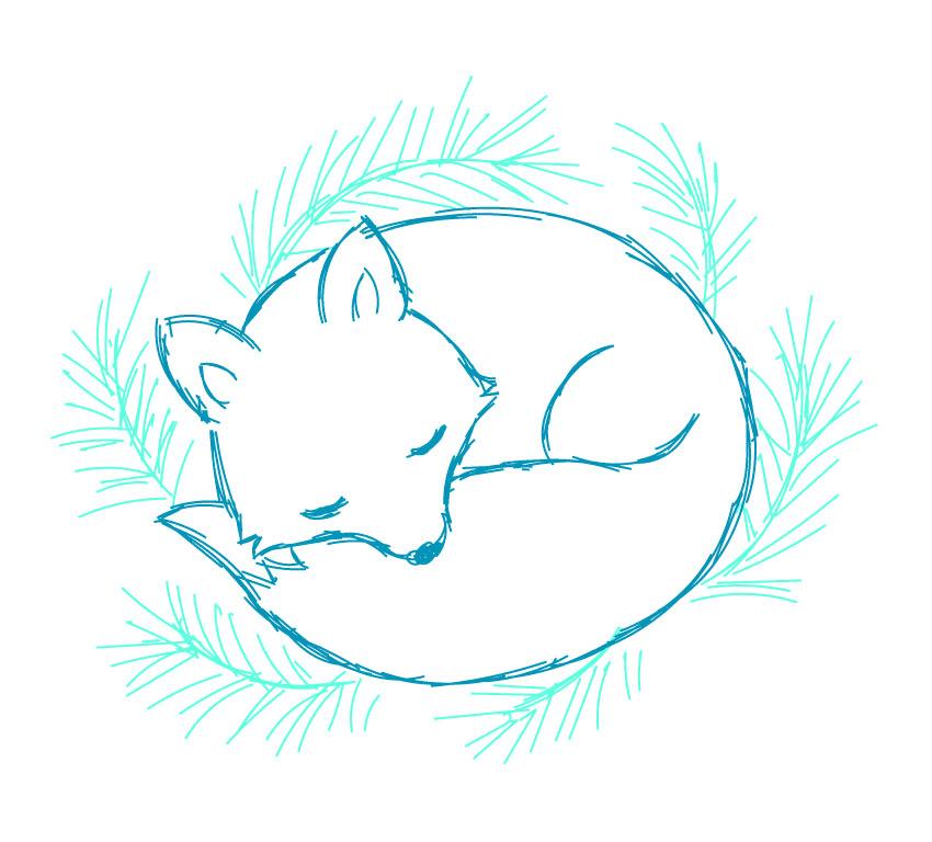 在睡觉的狐狸附近添加一些云杉枝。为了更好的区分,可以更改笔触的颜色。现在草图就完成了。