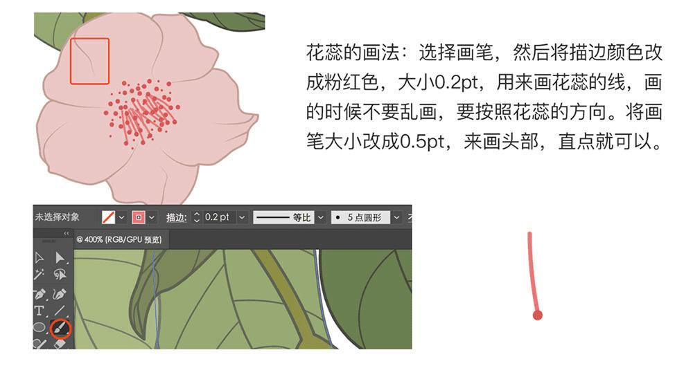 通过Al+ps绘制清新的噪点山茶花插画的方法