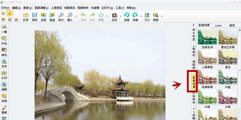 2、图片出现在iSee图片软件页面上。在iSee图片软件页面上,单击影楼效果。