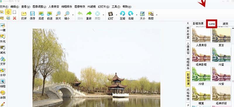 3、在影楼效果中单击LOMO。