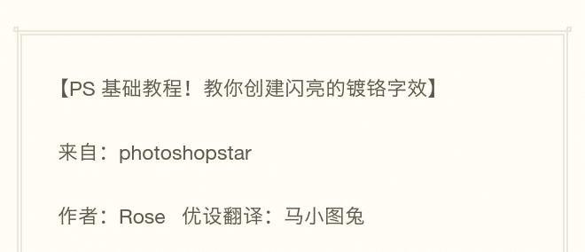 怎么样使用ps创建闪亮发光的镀铬英文字削? 来源:www.45fan.com 2018-01-27 17:07:52 怎么样使用ps创建闪亮发光的镀铬英文字削? 下面教大家如何使用ps制作镀铬英文字效,教程主要用到ps的图层样式,简简单单,感兴趣的小伙伴快来试试吧 最终效果: 主要过程: 共2页: 上一页12下一页 推荐阅读 怎么样使用Al创建炫酷的游戏角色? 如何通过Al结合ps创造复古的多边形人像艺 如何通过ps结合AL创建涂鸦文字效果? 在ps中创建变形文字的方法 使用CAD图纸创建块并使用块的步骤 在Excel中创建分组的步骤 在wps中绘制隐隐发光的红色心形的方法 在ps中绘制立体发光的红色五角星的方法 如何使用ps打造半透明自发光炫酷花朵? 如何通过Accesd2007创建子报表?