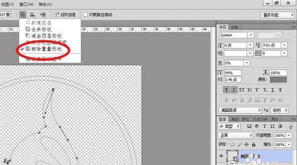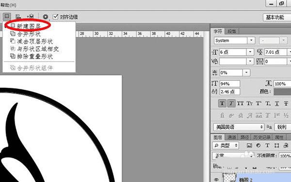 3、画圆的内侧,注意“路径操作”是“新建图层”,一个路径对应一个图层,制作方法同上一个步骤,完成后按回车确定;