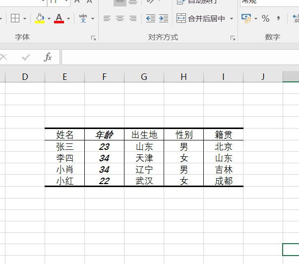 5、字体修饰。可以通过加粗、下划线和斜体来修饰表格中个别文字,以便凸显其重要性。如图所示: