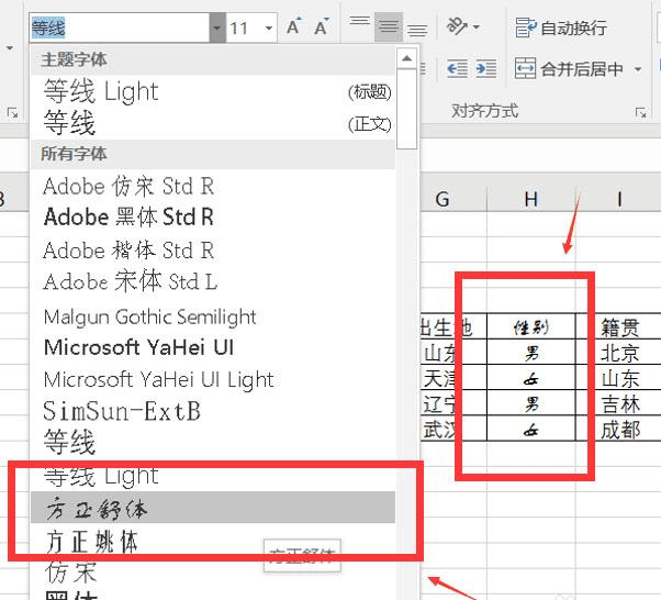 2、字体样式。字体样式如图所示,其中有多种样式可供选择,将鼠标放置于字体上,可供预览在表格中字体样式。