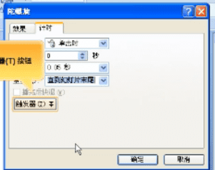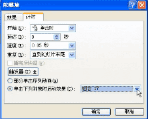 7、单击触发器按钮,选择单击下列对象启动效果,在下拉框中选择有开始有停止的那个选项。单击确定。