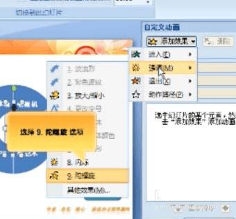 4、单击下图所示位置。就是单击螺旋:picture2下拉按钮。选择下拉中的效果选项,打开效果选项窗口。