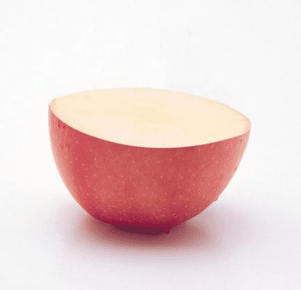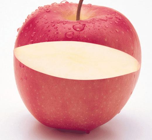 打开切开苹果的素材,用钢笔工具勾出苹果切面的轮廓,然后CTRL+回车创建选区,把这一部分苹果复制出来;