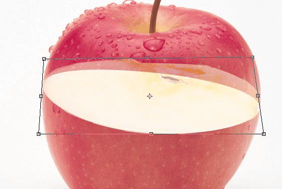 把切开的苹果拖进当前文档中,按照刚才椭圆的形状,对苹果进行变形处理(可以境地不透明度来进行细致调节);