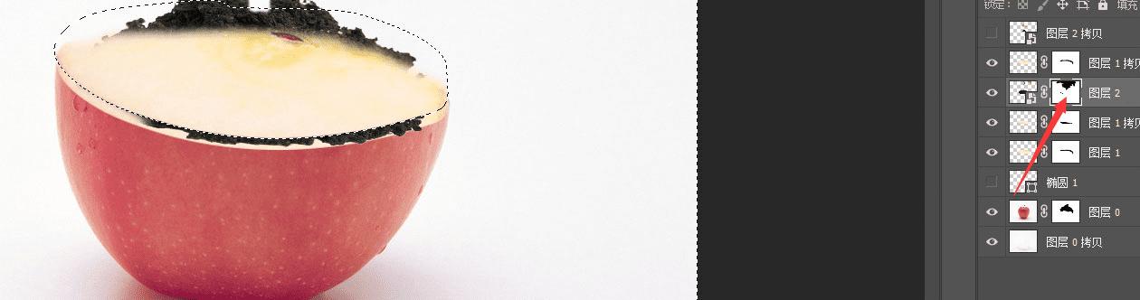 复制一层,做苹果切面的背面;之后为两个图层添加蒙版,擦去重叠的部分;