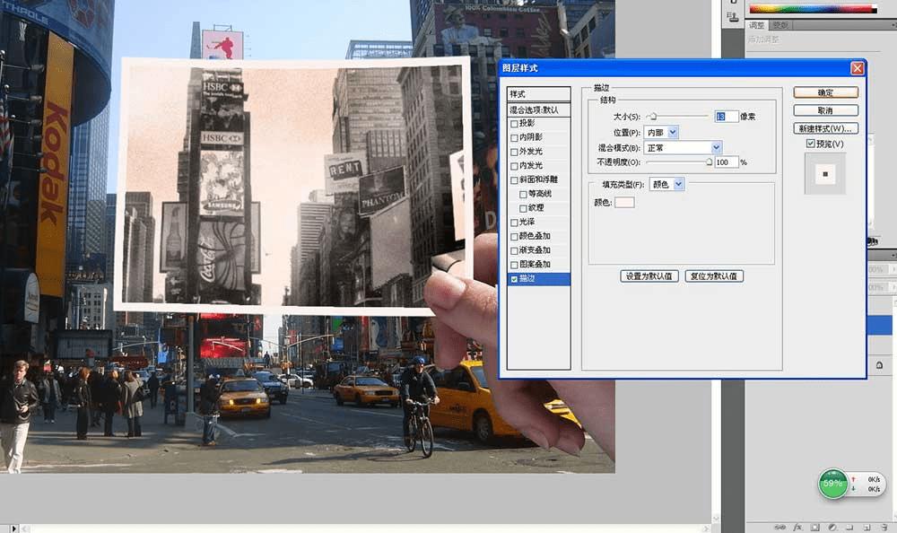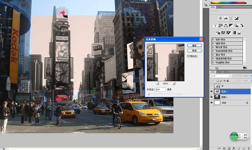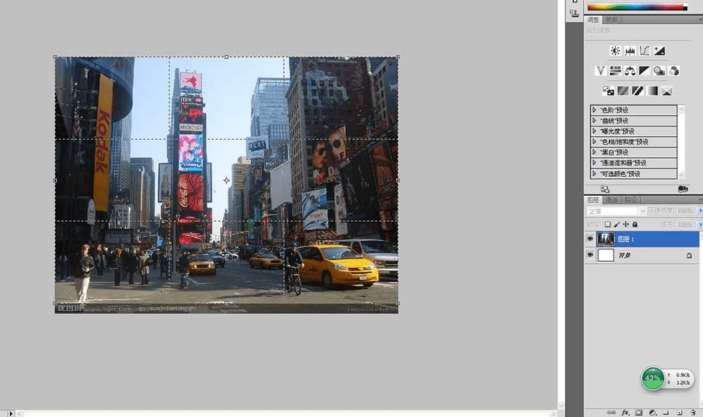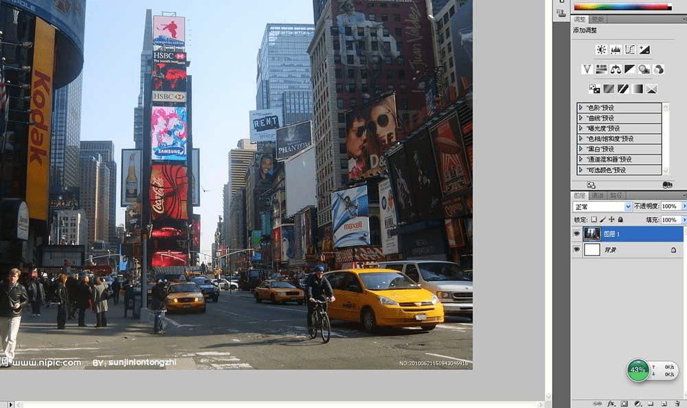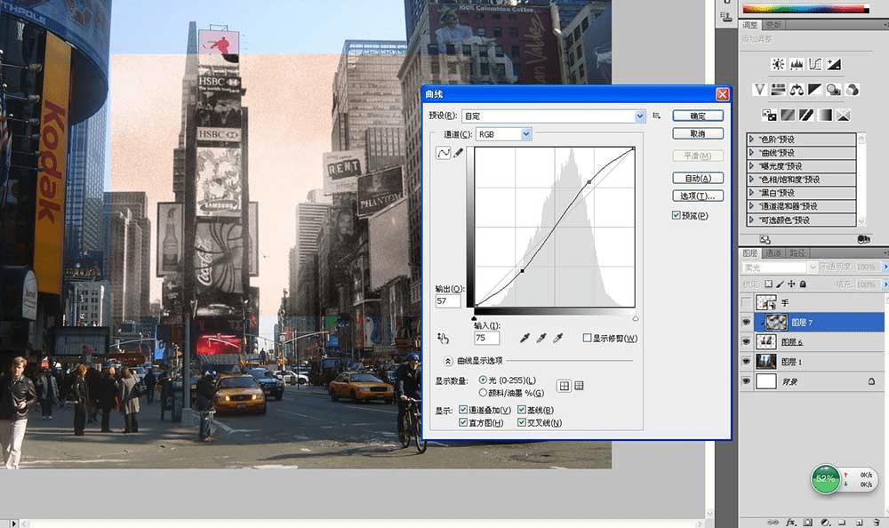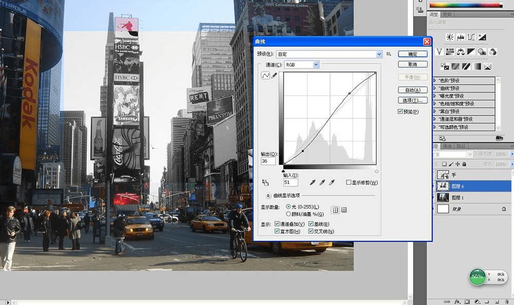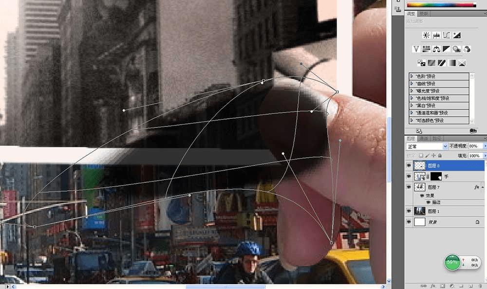 先把手隐藏,拉一个照片的选区。把时代广场ctrl+j一张出来~
