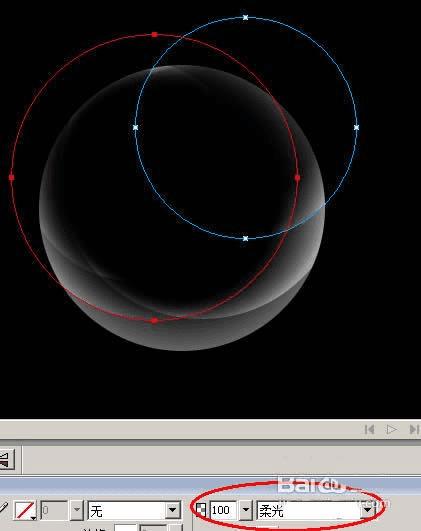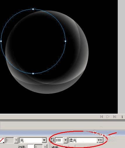 5、改变图像混合模式:柔光。将最初的圆缩小一点点,像做移动,然后改变图像混合模式为“柔光”像做上偏移,并将透明度还原为“100%”