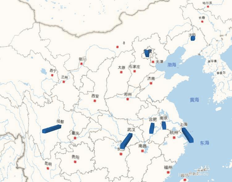 9、下图就是选定数据对应的三维地图,和我们传统意义上的数据表格,还是有很大的区别。
