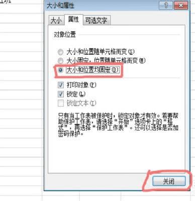 5、选择大小和位置均固定,点击“关闭”按钮。