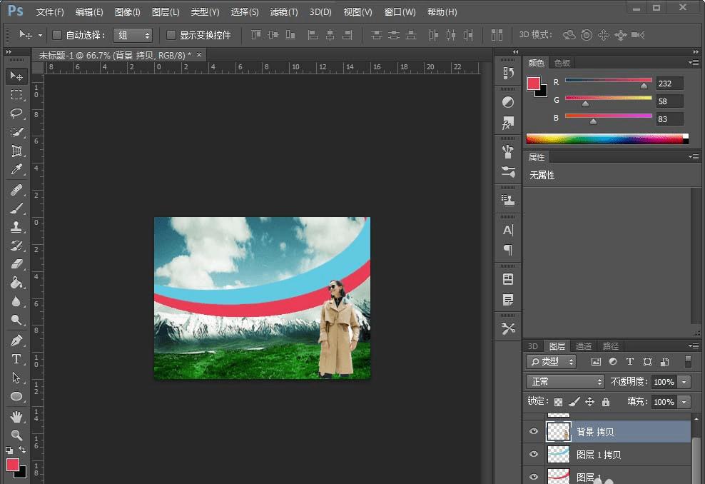 5、按住alt键,鼠标拖动彩条复制一层,改为红色。