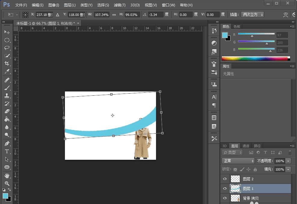 3、将素材拖入工作区,自由变换,按住shft键,等比例宿放。调整好大小与位置。