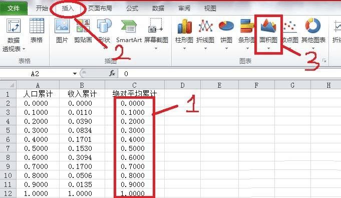 用EXCEL画洛伦兹曲线,主要使用面积图。具体做法如下: