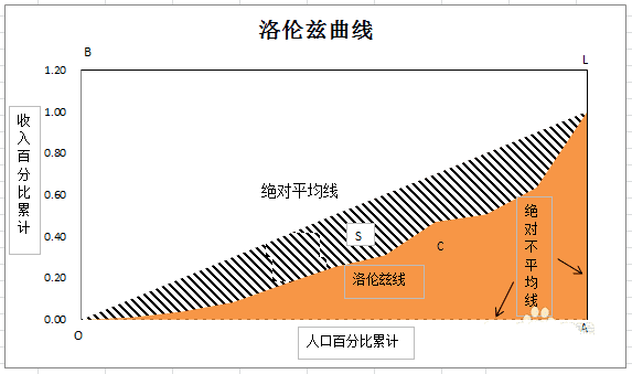 洛伦兹曲线(Lorenz curve),也译为“劳伦兹曲线”。就是,在一个总体(国家、地区)内,以“最贫穷的人口计算起一直到最富有人口”的人口百分比对应各个人口百分比的收入百分比的点组成的曲线。为了研究国民收入在国民之间的分配问题,美国统计学家(或说奥地利统计学家)M.O.洛伦兹(Max Otto Lorenz,1876- 1959)1907年(或说1905年)提出了著名的洛伦兹曲线。