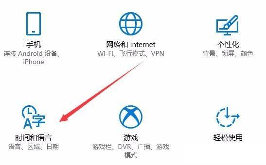 2、接着在打开的Windows设置窗口中点击“时间和语言”图标