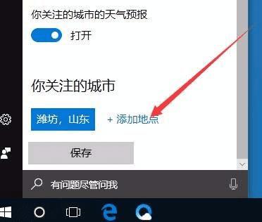 5、接下来我们设置要关注的城市,点击下面的“添加地点”快捷链接