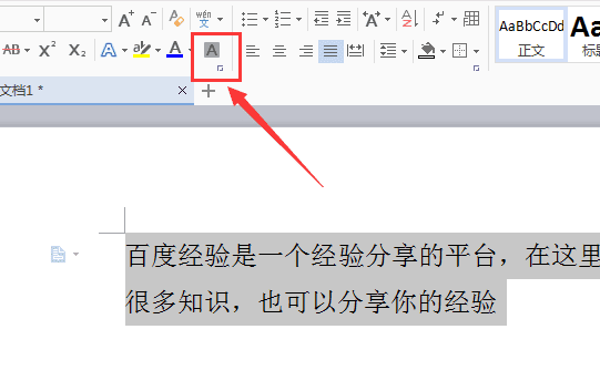 2、在该界面内输入文字,并将文字选择,如图所示: