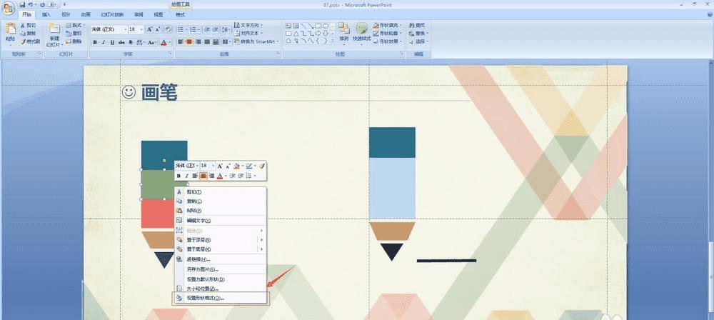 2、接着,我们选择参考颜色图形,右键找到设置形状格式。