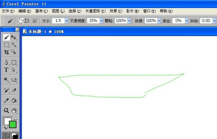2、接着,设置画笔的颜色为绿色,画笔的大小为10,并用画笔在画布上绘画一个人小船的船主体部分出来,如下图所示。