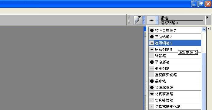 5、然后,更改画笔的笔触样式,选择渐变钢笔样式的画笔,如下图所示。
