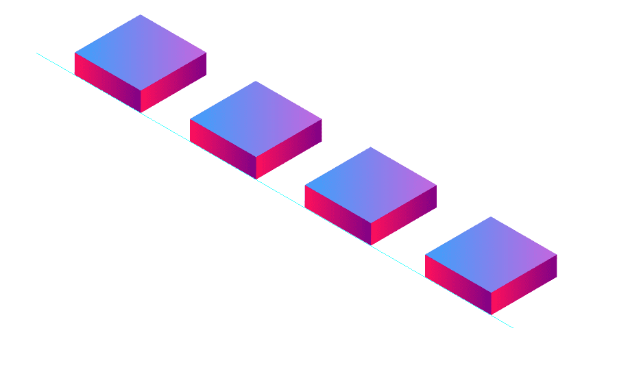 新建一个17px ×17px大小的矩形,填充颜色随意,执行【效果>3D>凸出与斜角】效果,位置选择"等角-上方",凸出厚度5pt,得到立体正方体快,扩展对象后,取消编组,成为独立的3个面,分别对每一个面进行上色。复制3份,沿着机身平行等距排列,得到4个平行方块按钮。为了使这四个方块在一条平行线,建立参考线,用直线工具画一条120px长的线,旋转60度,右键建立参考线,便将直线工具转化为参考线。