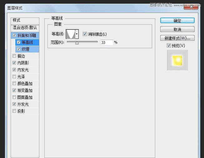 5、再加点纹理,等高线,可按自己喜好自由选择。再加点内阴影,内发光,外发光。