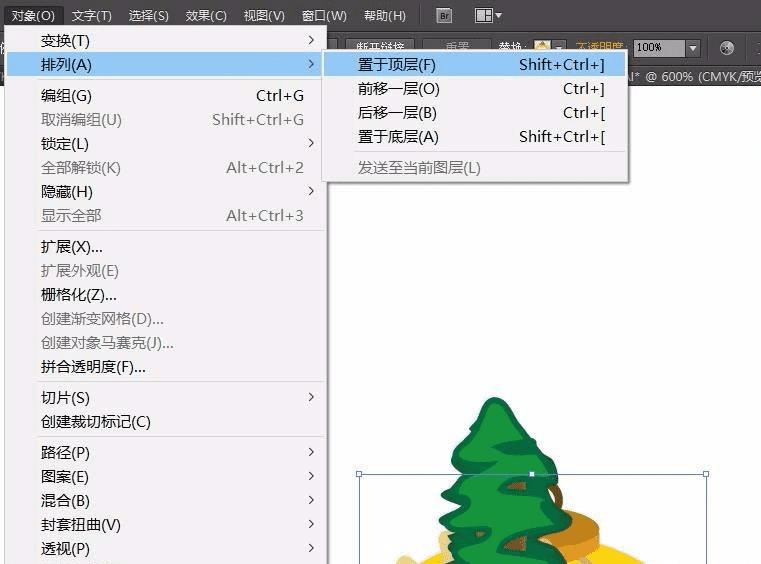 6、这里就不以具体绘制过程进行演示了,我们来通过几张图片来演示排列功能。我们将几幅图片叠加在一起,选择需要排列的图形,点击对象,排列,置于顶层。我们会发现选择的图形出现在了最上方。