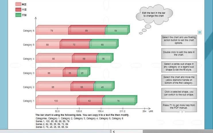 8、修改条形图数据 。双击条形图上的数字,就可以进入到条形数据的编辑页面,修改数字时条形就会随着数字的大小增长或是缩短,从而保证数字与条形代表的意义一致。条形图修改完成后,将图形进行保存即可。