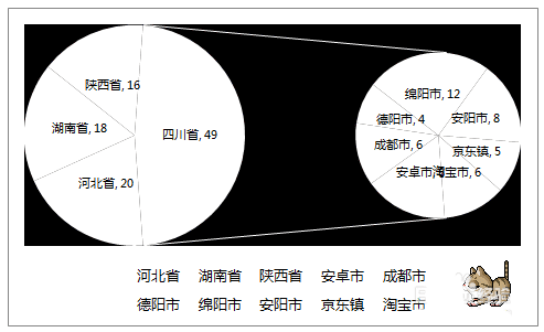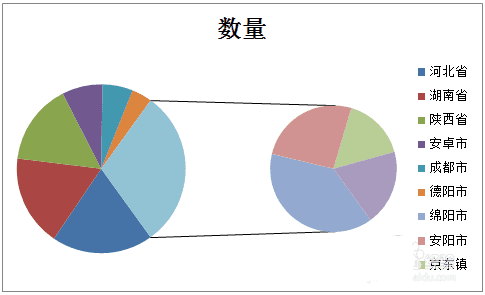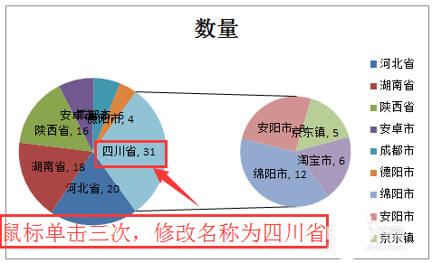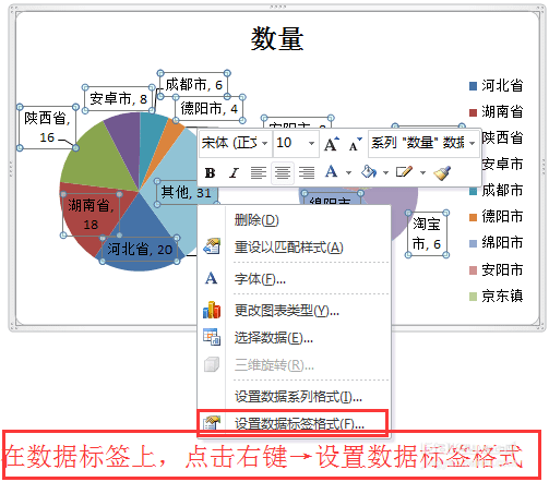 8、将“其他”设置为特定数据,比如这里将其设置为“四川省”,左边大图是同级“省”单位,右边小图是“省”下一级的“市”。再次右键点击饼图→“设置数据标签格式”