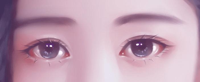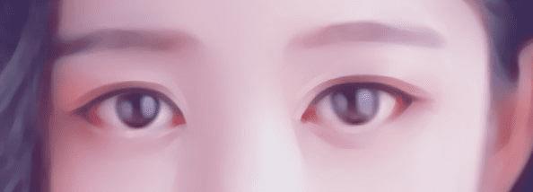 13、瞳孔铺色、描下双眼皮、眼睛轮廓受光的地方加强一下。