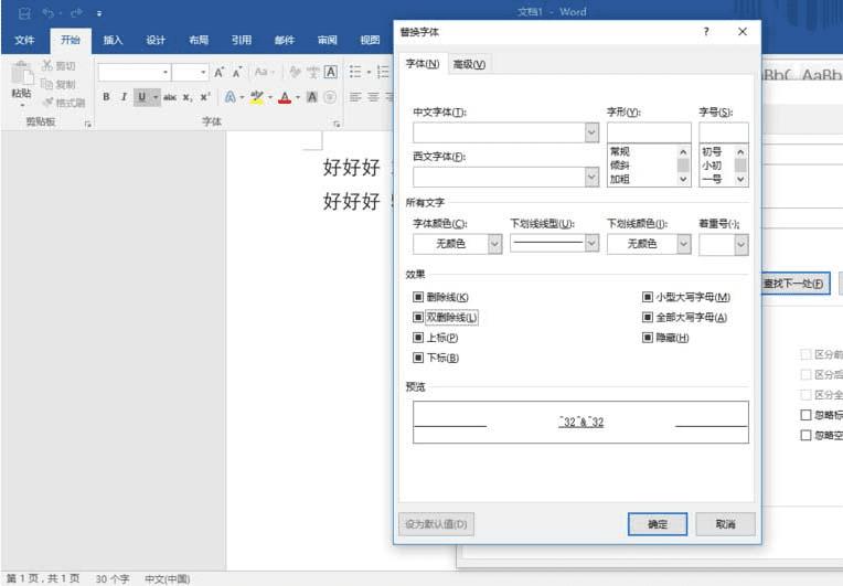5、点击"替换→格式"向下箭头,选择"字体"。