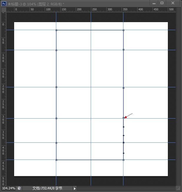 然后选择钢笔工具,在矩形框和参考线交叉处,添加锚点。