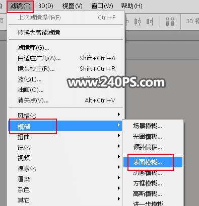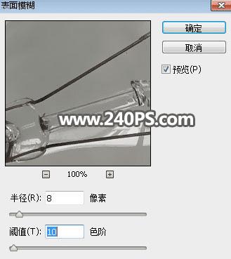 7、选择菜单:滤镜 > 模糊 > 表面模糊,参数及效果如下图。