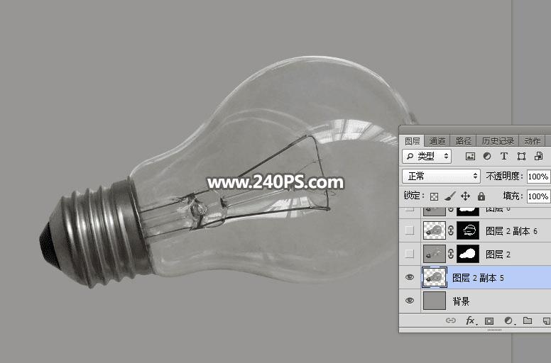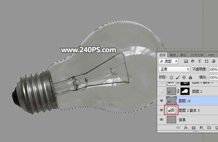 8、按住Ctrl键 + 鼠标左键点击灯泡图层缩略图载入选区,如下图。