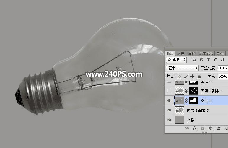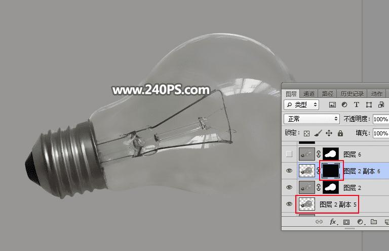 10、把原灯泡图层复制一层,按Ctrl + Shift + ] 置顶;然后添加图层蒙版,再把蒙版填充黑色,如下图。