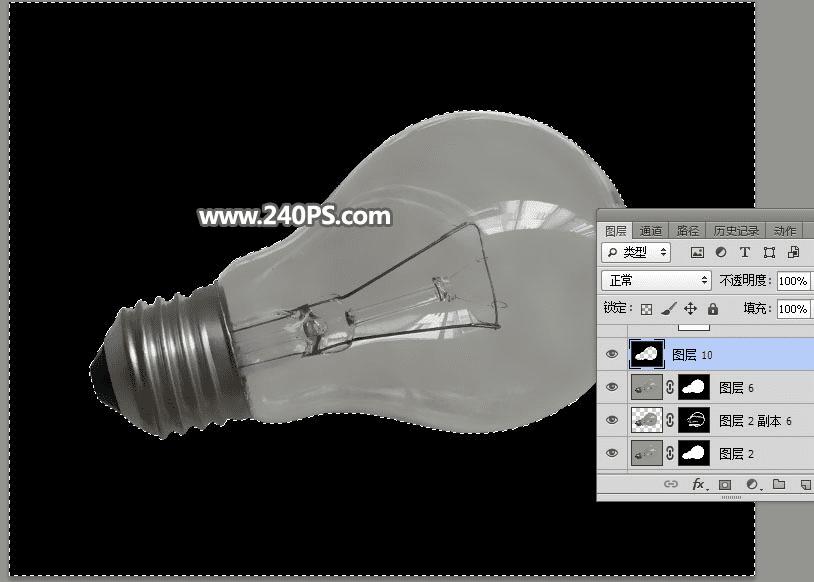13、再调出灯泡的选区,新建一个空白图层,把选区填充黑色,然后按Ctrl + D 取消选区。