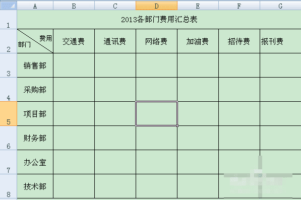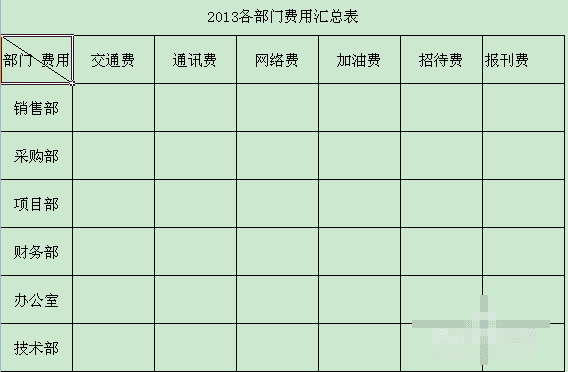 1、打开需要设置的excel表格:如下图(我想把标有“部门 费用”的单元格设置下线表头)