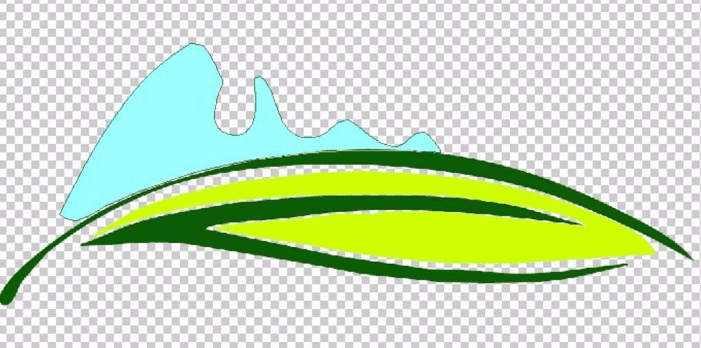 1、我们先用钢笔工具来绘制出一个封闭的绿叶形状的植被出来,一个创意的形状表现这个景点的绿色植被覆盖的感觉。