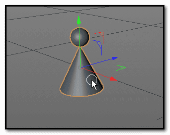 4、这时,球体与圆锥体,已合二为一,成为一个整体;并自动转为可编辑对象。我们对此合并对象进行各种操作,移动,旋转、缩放等等,是以一个整体来进行。