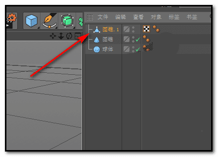 8、可以看到,这个结合体是从球体与圆锥这里复制过来的。原来的球体与圆锥还在。