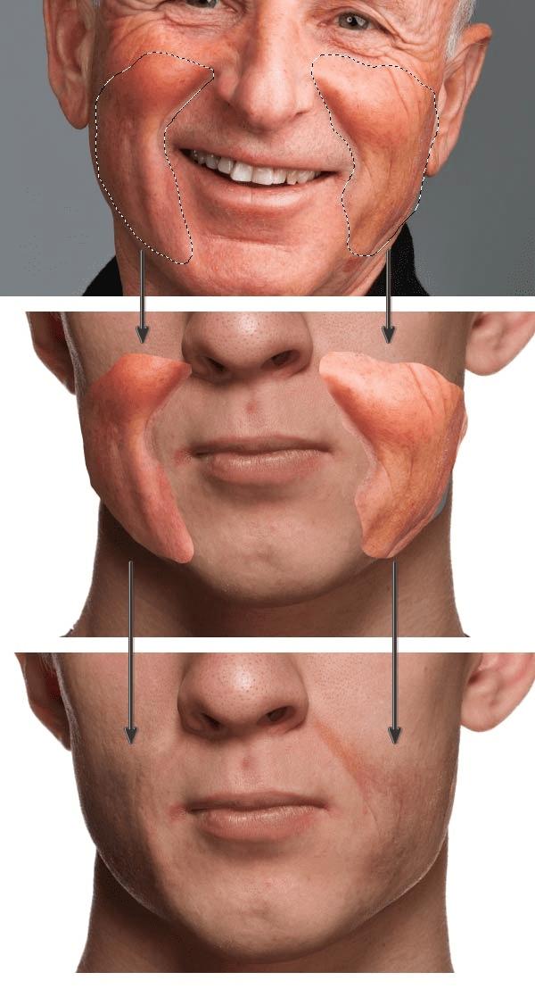 10、脸颊就要弄点皮肉下垂的感觉,效果如下图所示。