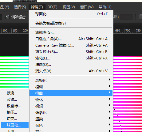 7、在菜单栏里面,滤镜-扭曲-球面化