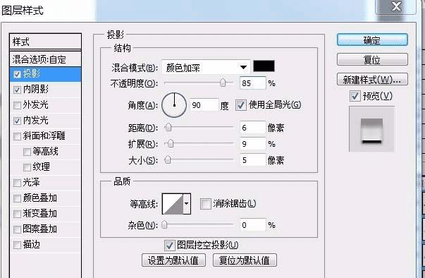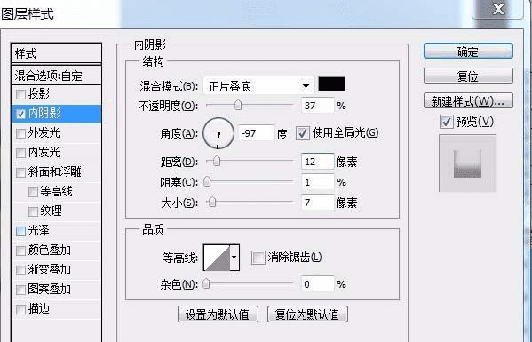 8、为该图层添加图层样式,如下: