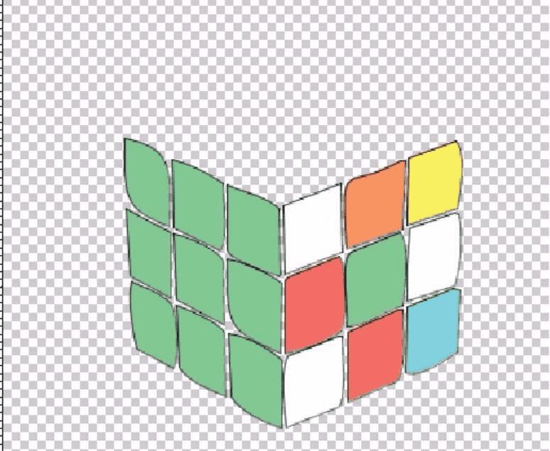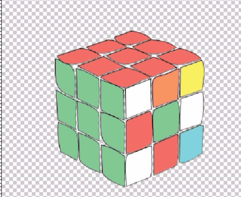 2、有了9个封闭子路径之后,我们就可以给魔方着色了,我们可以选择任意的子路径进行颜色的填充,这里我们选择了淡红色对于子路径进行了填充,一共填充了两个子路径。